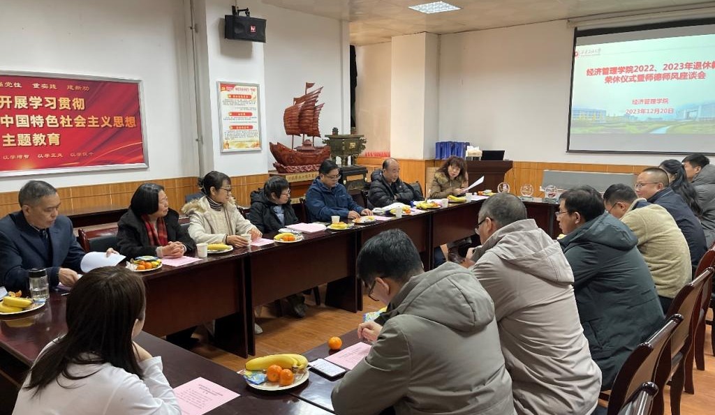 为深入学习贯彻习近平总书记关于教育的重要论述,全面落实立德树人根本任务,激发教师的职业荣誉感和自豪感,坚定教师的职业信念和职业操守,12月20日,经济管理学院在雁塔校区东方石油楼1507会议室举办退休教师荣休仪式暨师德师风座谈会。学校总会计师樊晓民出席并讲话,学院2022、2023年退休教师代表李志学、刘松华、史晓燕、来彦荣等参会,经济管理学院党委书记王宏卫,院长王君萍,副院长吴勋、李春霄,各系、办主任代表及新进青年教师代表参加座谈会。会议由经济管理学院党委副书记王刚主持。