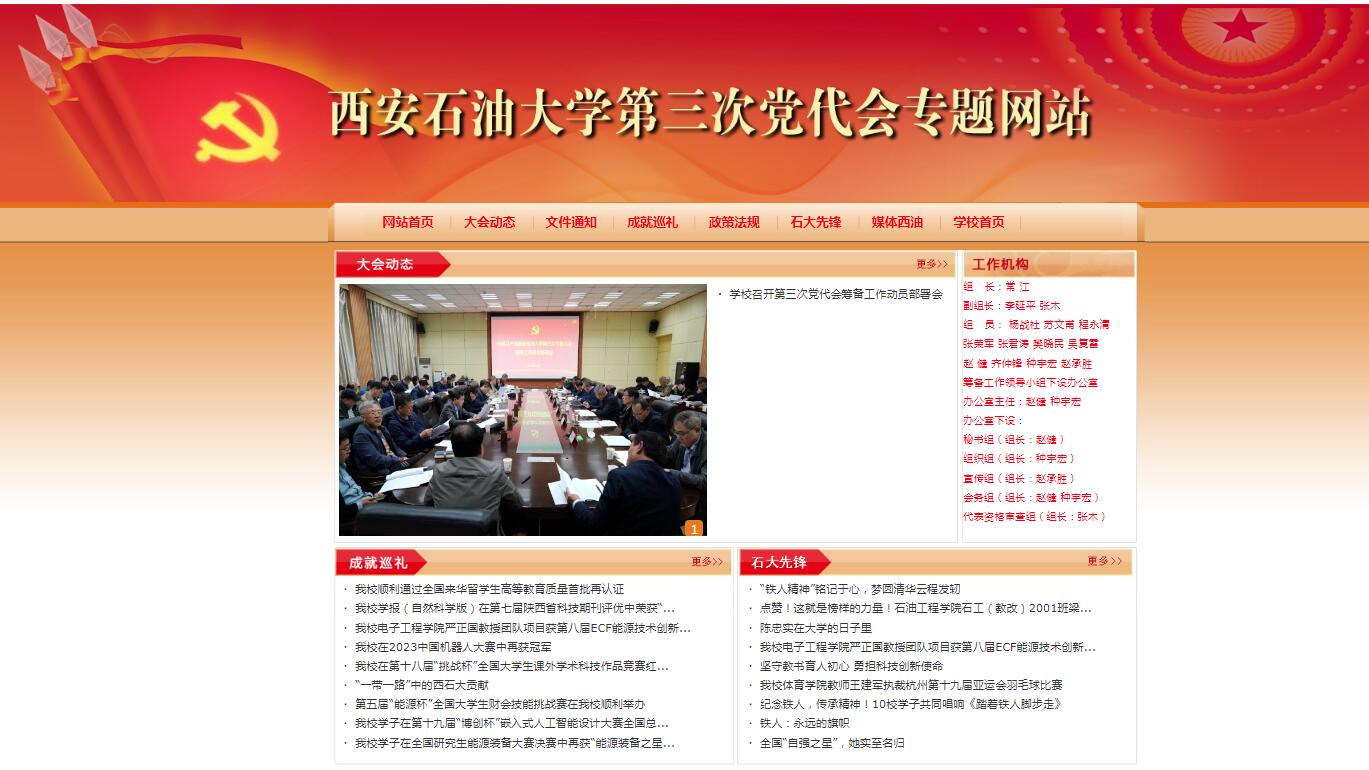专题网站包括“大会动态”“文件通知”“成就巡礼”“政策法规”“石大先锋”“媒体西油”等栏目,将集中展示学校第二次党代会以来党的建设、教学科研、学风建设、人才培养、管理服务等方面取得的重要成就和宝贵经验;全面报道bat365第三次党代会的筹备情况和召开盛况;及时反映各基层党组织迎接党代会召开以及学习贯彻落实党代会精神的情况,先进基层党组织、优秀党员的典型事迹;全面宣传本次党代会制定的学校发展规划、奋斗目标和主要任务。