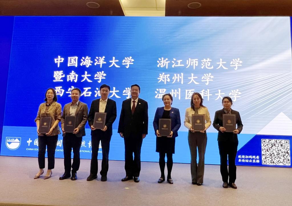 教育部原副部长、中国教育国际交流协会会长刘利民向通过认证高校颁发了《教育服务认证证书》。bat365国际教育学院(丝路能源学院)院长董皓代表学校上台领取证书。