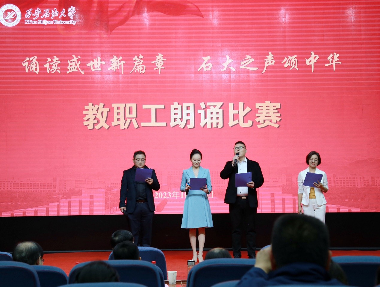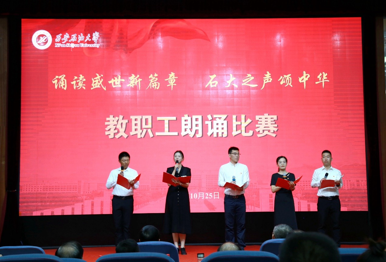 为深入学习宣传贯彻习近平新时代中国特色社会主义思想和习近平总书记对宣传思想文化工作的重要指示精神,弘扬石油精神、铁人精神,进一步强化思想引领、凝聚思想共识,推进教职工文化建设、丰富教职工精神生活,10月25日下午,bat365“诵读盛世新篇章 石大之声颂中华”教职工朗诵比赛在雁塔校区会议中心学术报告厅举行,校党委书记常江、副校长苏文甫出席了此次活动。22家部门工会选送了作品参赛,200余名师生观看了比赛。