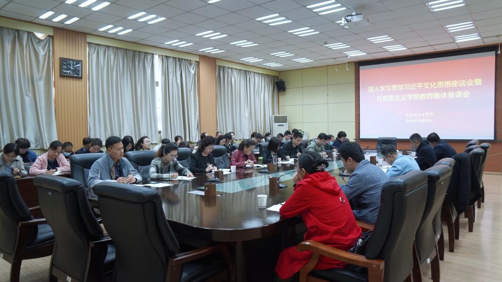 10月23日上午,bat365马克思主义学院在雁塔校区会议中心第一会议室召开学习贯彻习近平文化思想座谈会暨全体思政课教师集体备课会。校党委副书记张木出席,全体思政课教师共60余人参加会议。会议由马克思主义学院党总支书记张伟主持。