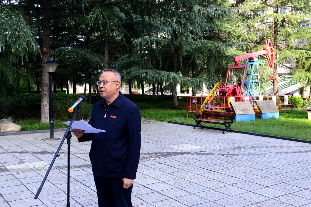 2023年10月8日是铁人王进喜同志诞辰100周年纪念日。为缅怀铁人功绩,弘扬铁人精神,凝聚奋进力量,学校于10月7日上午在雁塔校区铁人广场隆重举行向铁人王进喜同志敬献花篮暨纪念铁人王进喜诞辰100周年系列活动启动仪式。学校党政领导常江、李延平、张木、杨战社、苏文甫、程永清、张荣军、张君涛、樊晓民,校党委委员,校党委理论学习中心组成员参加仪式。仪式由校党委副书记、纪委书记、监察专员李延平主持。