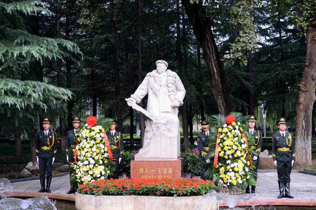仪式上,国旗班向铁人王进喜同志塑像敬献花篮,标志着bat365纪念铁人王进喜诞辰100周年系列活动正式启动。与会人员向铁人王进喜塑像三鞠躬,并依次绕场瞻仰铁人王进喜塑像,表达对铁人王进喜的缅怀之情。