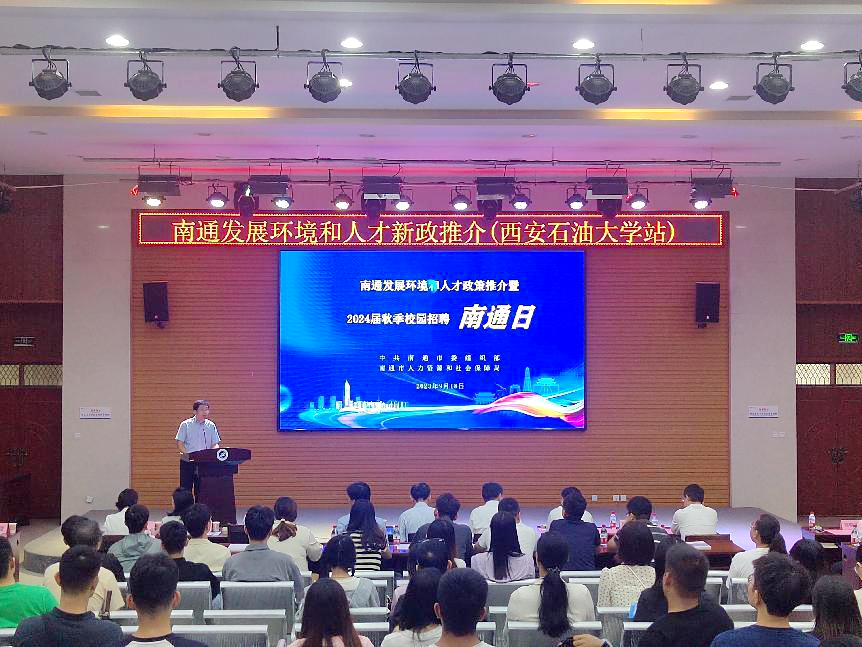 张木致欢迎词,对江苏省、南通市人社部门及招聘企业的到来表示热烈欢迎,详细介绍了bat365中文官方网站及2024届毕业生生源情况。他表示,南通市拥有独特的区位优势和广阔的就业市场,对高校毕业生人才具有强大的吸引力。西安市作为西部教育重镇,拥有巨大的人才体量,“你有位、我有才”就能珠联璧合。南通市坚持人才优先发展战略不动摇,进一步优化顶层设计,全力推进人才体制机制创新,着力破除制约人才发展的制度藩篱和政策壁垒,大力吸引人才来通就业创业,全市人才发展环境明显优化,区域人才竞争力显著提升,引才聚才效应不断凸显,人才成为推动南通产业升级和科技竞争力全面提升的“助推剂”。在此,他诚挚邀请南通市领导、对口企业来校开展各类人才供需对接活动,不断深化校地、校企合作,并祝愿南通市能“聚贤汇能”“人才通达”。