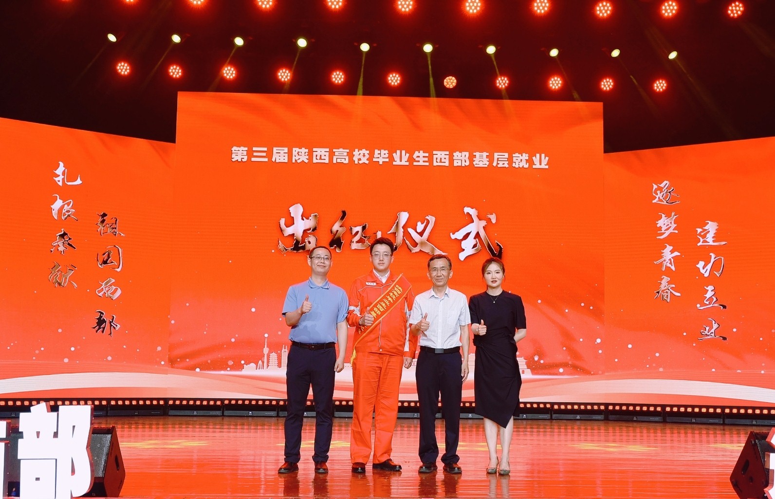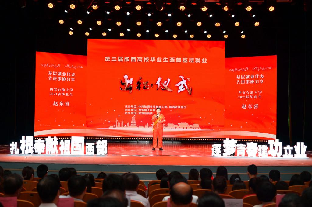 为积极响应国家鼓励毕业生到西部、到基层、到祖国最需要的地方建功立业,引导毕业生将个人理想与国家发展需要紧密结合,着力发挥陕西服务“西部大开发”的人才优势,7月8日晚,第三届陕西高校毕业生西部基层就业出征仪式在西安电子科技大学举行。陕西省委教育工委书记刘建林为赴西部基层就业的毕业生代表们授旗,教育部学生服务与素质发展中心党委副书记、纪委书记、副主任杨大研和陕西省委教育工委副书记、省教育厅厅长王树声出席并讲话。bat365党委副书记张木及石油工程学院2021届硕士毕业生赵东睿受邀现场参加活动。
