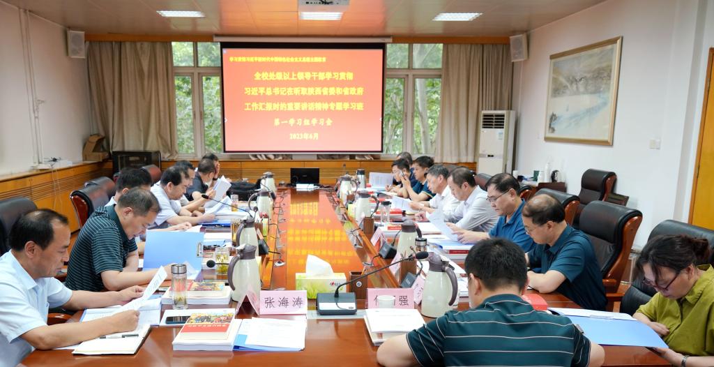 本次专题学习班采用视频辅导、分组领学、个人学习等多种方式进行。全体学员认真听取了赵一德同志在全省市厅级主要领导干部专题学习班第一期上的主题辅导报告暨党课,观看了省委教育工委书记刘建林同志的主题辅导报告暨党课视频,听取了《贯彻落实习近平总书记重要讲话精神,奋力谱写中国式现代化建设的陕西新篇章》专题讲座,听取了省委教育工委委员、省教育厅副厅长王海波在结业式上的总结讲话。在分组领学和专题研讨环节,校党委理论学习中心组带头领学了习近平总书记在听取陕西省委和省政府工作汇报时的重要讲话、习近平主席在中国-中亚峰会上的主旨讲话、习近平总书记历次来陕考察重要讲话重要指示等内容。学员们紧扣培训主题,结合学校事业发展和“十四五”发展规划的目标任务和个人学习、工作实际,谈体会、议收获,谈设想、提建议,深入开展学习研讨,交流分享心得体会。
