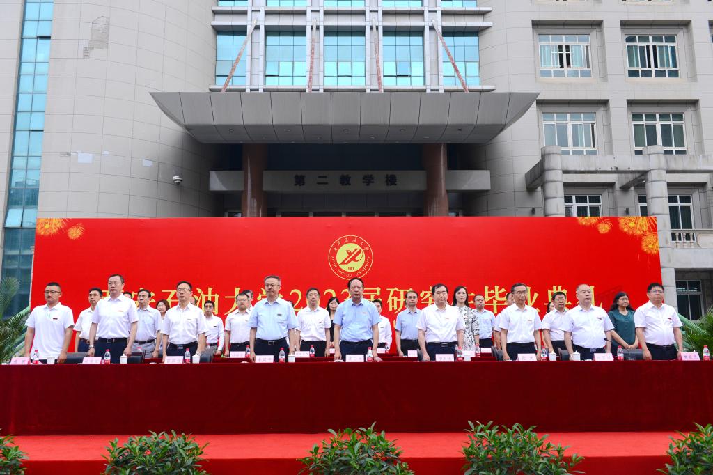 校长李天太为2023届博士、硕士研究生致辞。李天太代表学校全体教职工向顺利完成学业、获得学位的1298名研究生表示热烈祝贺,向辛勤培育同学们的老师、默默支持同学们的亲友和社会各界朋友表示诚挚敬意。李天太回顾了bat365研究生教育近三年获得的成就及2023届毕业研究生在学业、科研和学科竞赛等方面取得的成绩,并向即将告别母校、踏上征途的研究生提出三点希望:一是修身立德、心怀理想,将国家民族命运系于己身;二是胸怀天下、勇于担当,立于时代之先永不止步;三是积极进取、开拓创新,成为拥有真本领的栋梁之才。最后李天太寄语广大毕业研究生,希望他们以远大理想持续引领未来事业的发展方向,以创新思维努力构筑未来事业的发展平台,以必胜信念不断赢得未来事业的发展成就,以深刻思考真正领悟未来人生的价值意义,坚持积极进取,不断学习,提升自我、完善自我、更新自我,练就过硬本领,努力成为可堪大用、能担重任的栋梁之材。