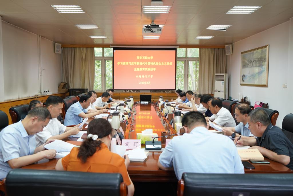 在实践研学交流研讨环节,学校主题教育领导小组组长、校党委书记赛云秀在雁塔校区行政楼五楼会议室主持召开学习研讨交流会。会议深入学习了习近平总书记在中共中央政治局第五次集体学习时、在内蒙古考察期间的重要讲话重要指示精神,学习了中央、省委学习贯彻习近平新时代中国特色社会主义思想主题教育有关学习贯彻习近平总书记重要讲话精神,进一步落实以学正风重要要求,做好专项整治等通知精神,学习了《习近平著作选读》第一卷有关宣传思想工作、全面深化改革等篇目。
