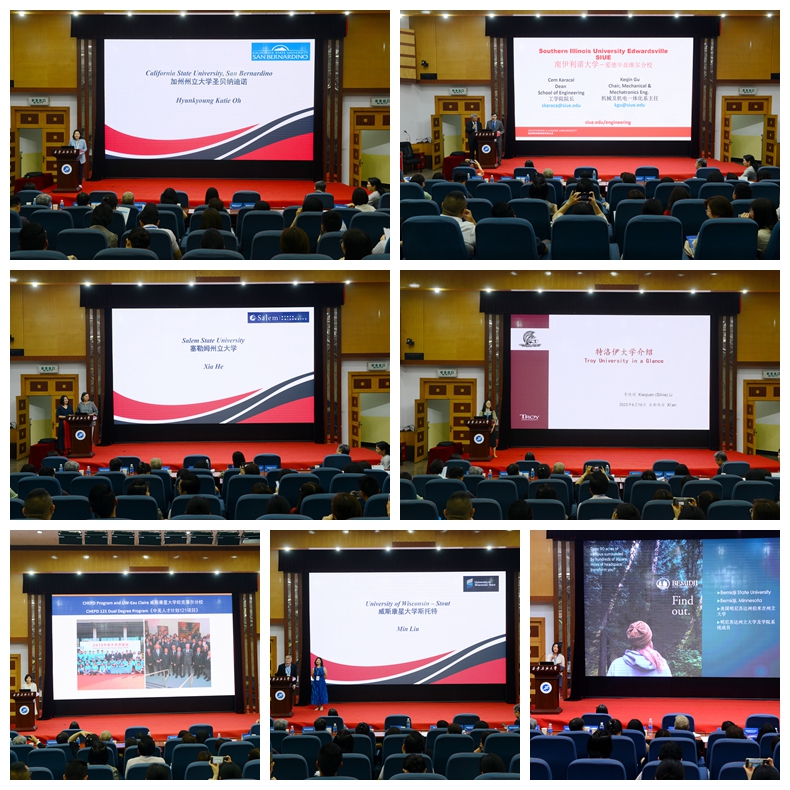 美国加州州立大学圣贝纳迪诺、塞勒姆州立大学、南伊利诺伊大学爱德华兹维尔、特洛伊大学、威斯康星大学斯托特、维斯康星大学欧克莱尔等7所美方大学分别向与会代表介绍各自学校及121项目的开展情况,并与陕西各高校代表进行自由洽谈与对接。