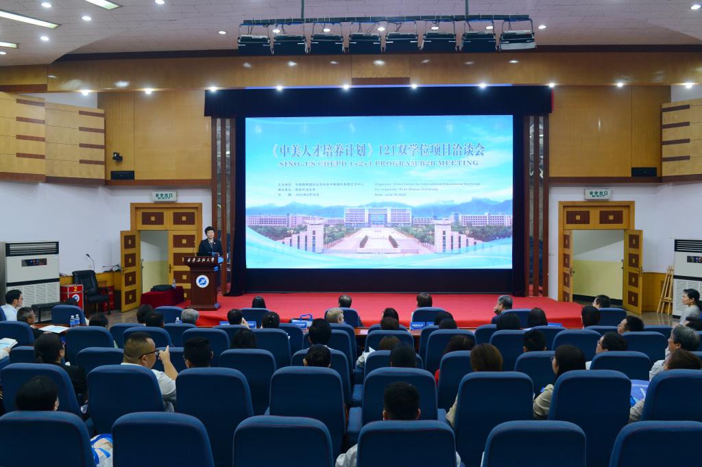 6月16日,由中国教育国际交流协会中教国际教育交流中心主办,bat365承办的2023年《中美人才培养计划》121双学位项目洽谈会在bat365雁塔校区会议中心学术报告厅举行。陕西省教育厅二级巡视员董侠,bat365副校长张荣军,中教国际教育交流中心主任张靖、副主任吴琴,美国州立大学与学院学会及美国加州州立大学圣贝纳迪诺、美国塞勒姆州立大学等121项目7所美方高校代表,全省27所高校代表,bat365国际交流与合作处、教务处、国际教育学院及各院(系)负责人等近百名中外嘉宾出席会议,共商中美教育合作交流大计。