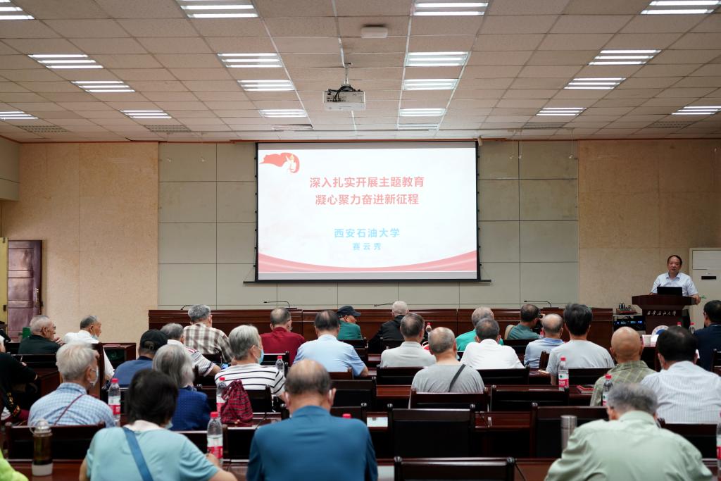 6月13日下午,校党委书记赛云秀、副校长苏文甫在雁塔校区会议中心第三会议室为离退休党员讲授学习贯彻习近平新时代中国特色社会主义思想主题教育专题党课,校党委副书记雷西合出席,党政办公室、组织部、离退休工作处负责人,离退休党总支委员、支部书记、离退休党员代表共100余人聆听了专题党课。
