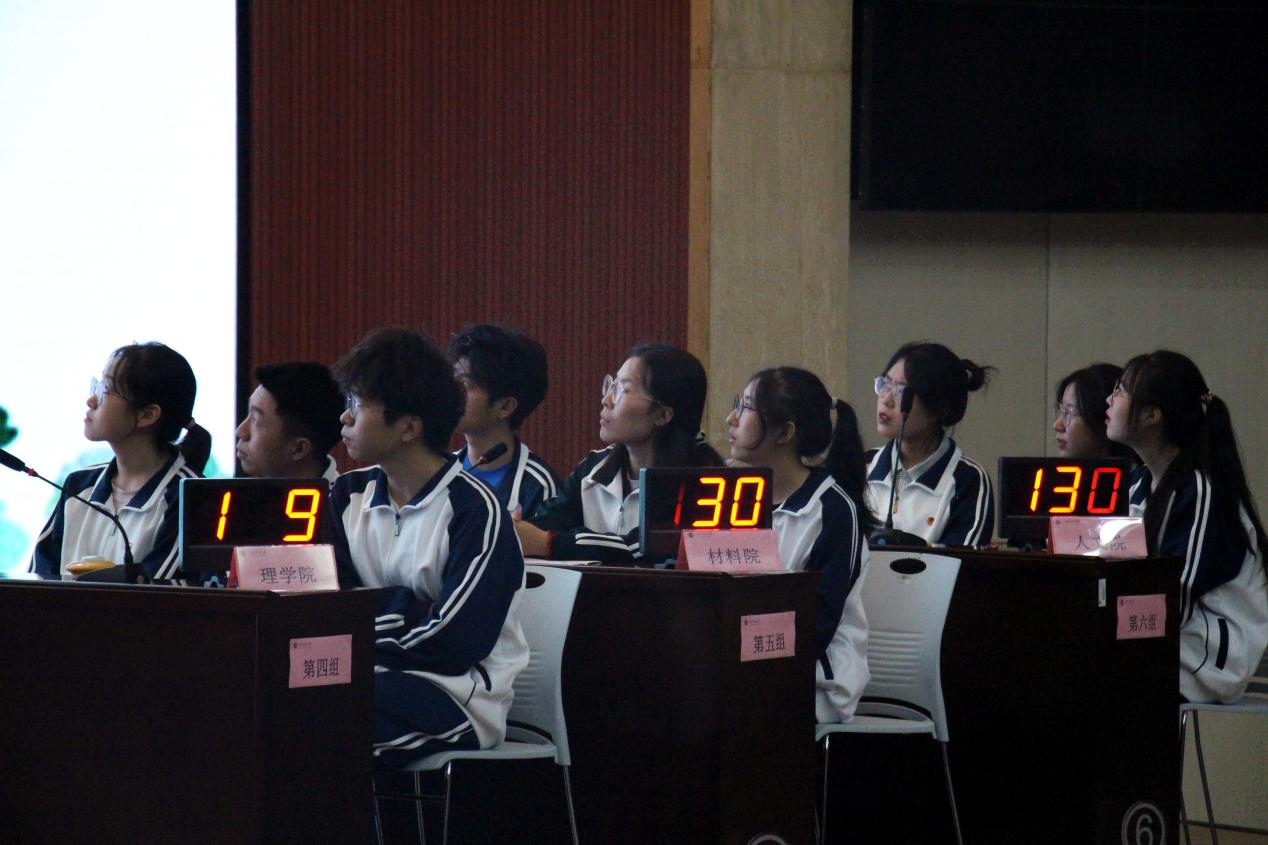 决赛分为团队展示、必答题、案例题、观众互动、抢答题、闯关风险题六个环节,参赛选手沉着冷静作答,观赛学生积极参加互动。最终理学院代表队获得一等奖,人文学院代表队和石油工程学院代表队获得二等奖,材料科学与工程学院代表队、经济管理学院代表队和地球科学与工程学院代表队获得三等奖。