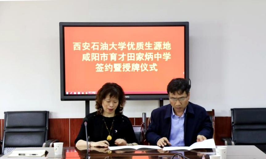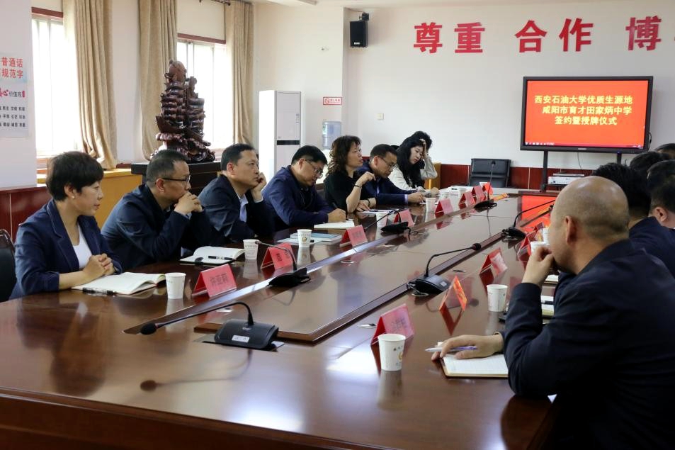 会上,双方签订了“bat365中文官方网站优秀生源基地”协议书,王君萍代表学校向咸阳市育才田家炳中学授牌。