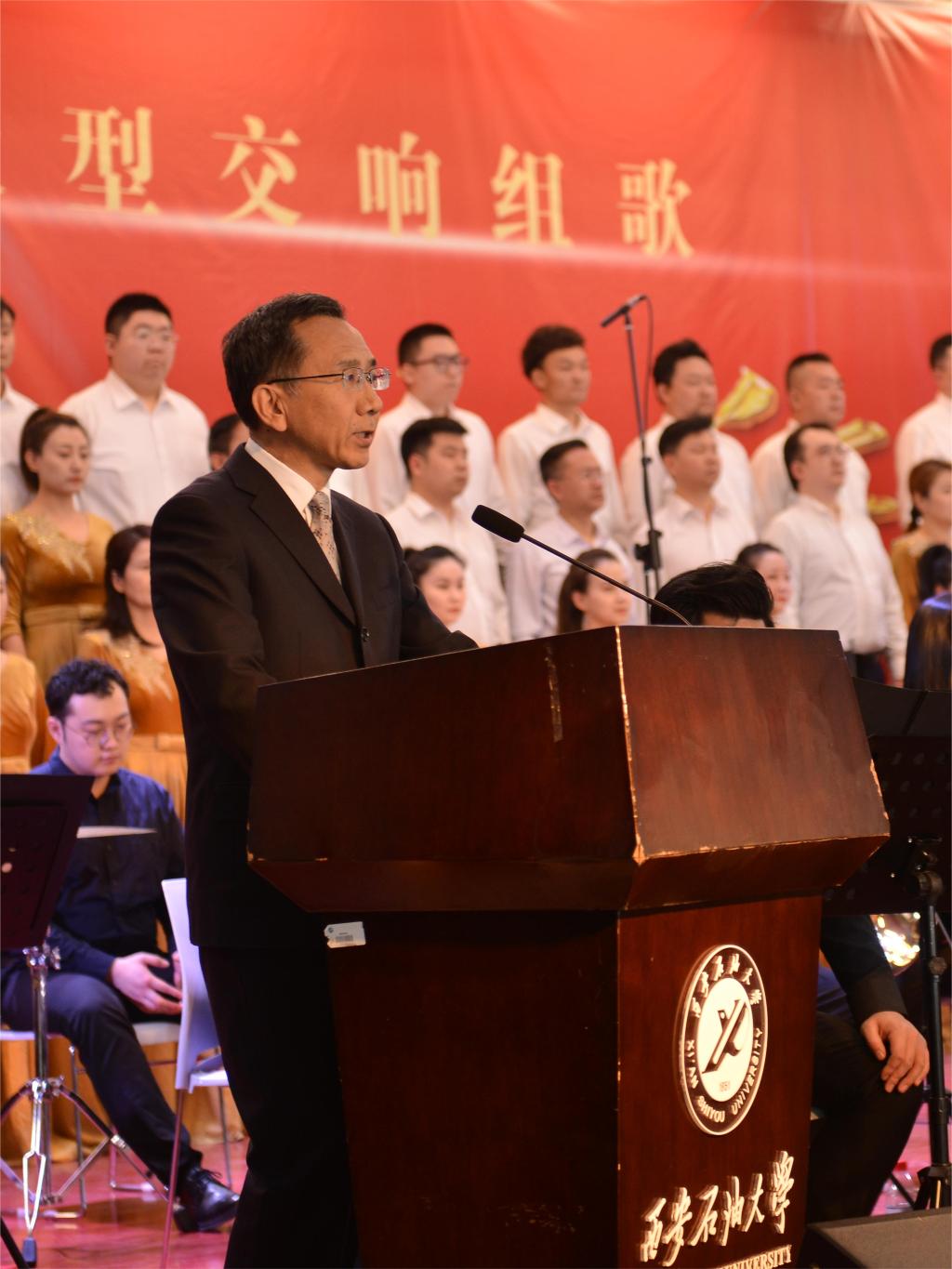 张木在演出前致辞。他首先对陕西省歌舞剧院各位演出人员的到来表示热烈欢迎和衷心感谢,随后讲到《伟大的征程》这部大型交响组歌是对中国共产党主要历史事件的回顾,是对丰功伟业的歌颂,是对美好未来的展望,此次交响乐会是bat365中文官方网站“音乐厅里的思政课”,艺术家们将以精彩的表演引导青年学子树立正确审美观,陶冶高尚的审美情操。