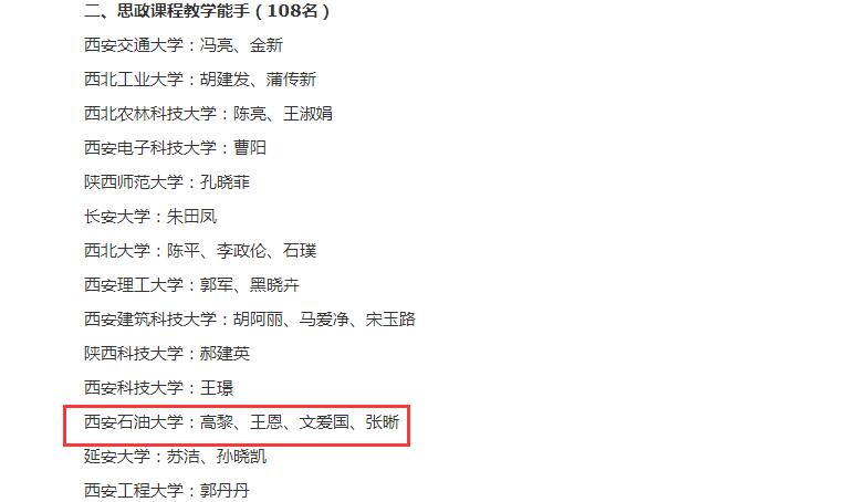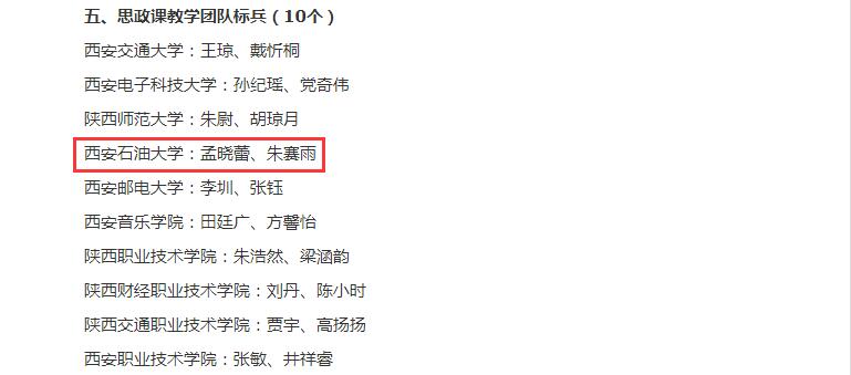 2022年度陕西高校思政课教师“大练兵”省级现场展示获奖名单于4月13日公布,bat365马克思主义学院教师李海霞获得思政课程教学标兵称号,孟晓蕾、朱赛雨获得思政课教学团队标兵称号,高黎、王恩、文爱国、张晰获得思政课程教学能手称号。