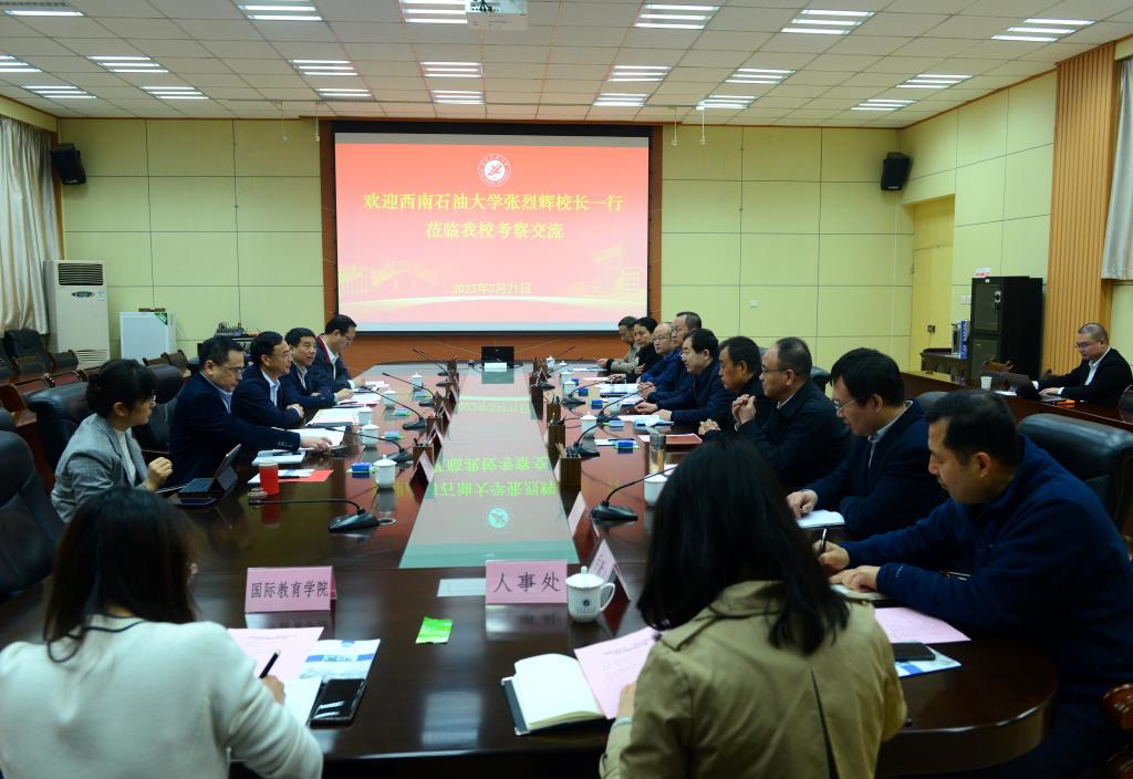 3月21日上午,西南石油大学校长张烈辉带队来校开展调研交流。bat365党委书记赛云秀会见了张烈辉一行。交流座谈会在雁塔校区会议中心第一会议室召开,bat365校长李天太、副校长程永清,西南石油大学副校长郭建春出席会议。座谈会由bat365副校长张荣军主持。