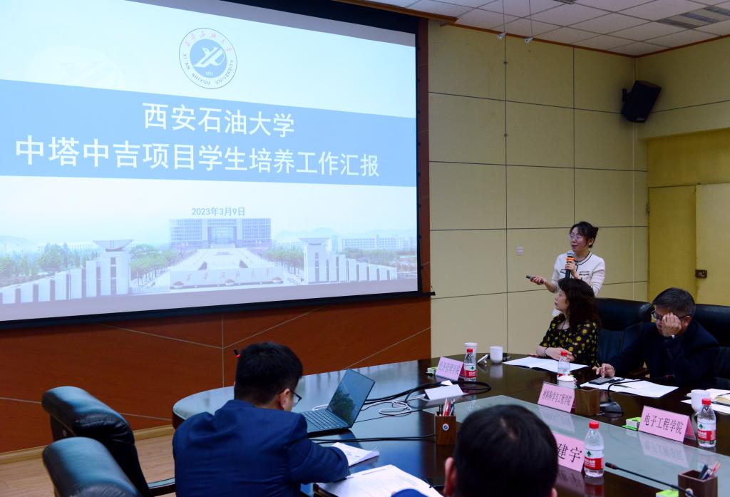 座谈会上,中油国际管道有限公司人力资源部(党委组织部)副部长艾唐敏介绍了公司基本情况以及中塔、中吉项目进展。国际教育学院(丝路能源学院)院长董皓汇报了学校来华留学生教育的基本情况,以及中塔、中吉项目国际学生培养工作,并提出了下一步工作规划。