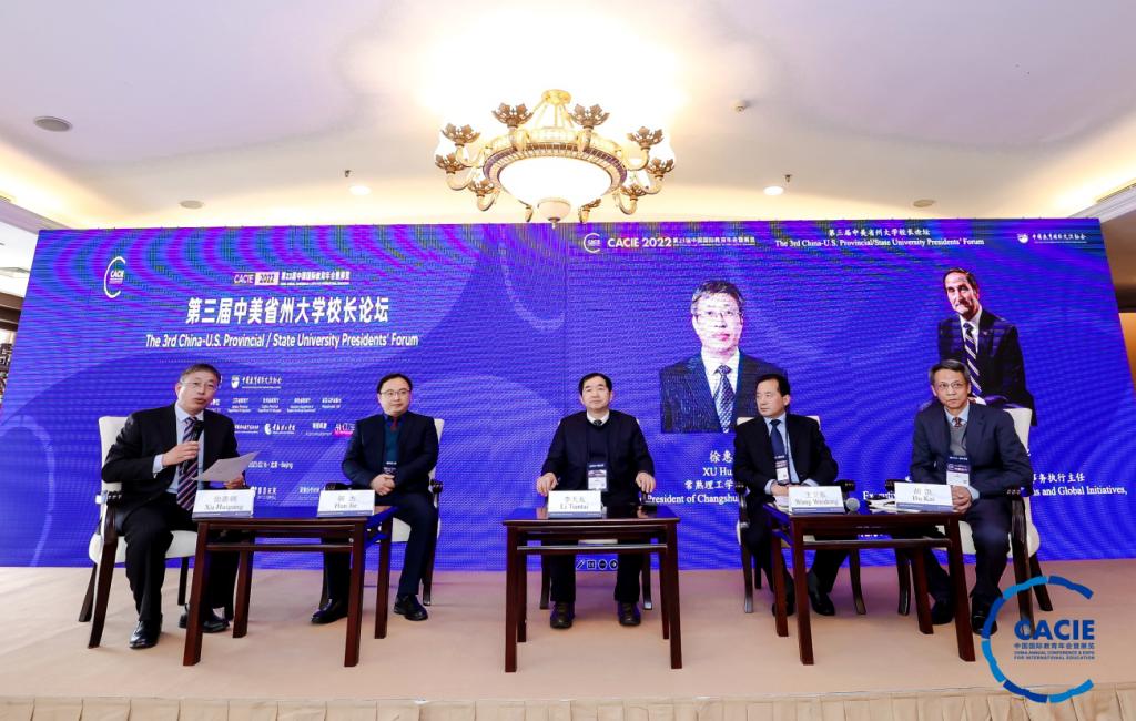 作为本届年会的重要组成部分,第三届中美省州大学校长论坛以线上+线下形式举行,来自170多所中美高校的代表出席,邀请中美12所高校的校长作为发言和研讨嘉宾。bat365校长李天太是陕西高校唯一特邀论坛嘉宾。论坛主题为探索中美省州大学产教融合新模式,提高国际化人才培养质量,服务地方经济社会新发展。论坛研讨内容包括以中美学分互认、学位联授项目为基础,以国际化人才培养为纽带,构建高水平、宽领域、可持续的中美省州高校合作交流平台。通过教育国际交流打造适应国家发展需求的新工科、新农科、新商科等高质量专业学科群,建设具有国际化水平的师资队伍,加强中美高校之间学术科研合作,通过产教融合模式强化合作共赢理念,推进中美省州高校教育交流、人才培养、校企合作、科研合作、人文交流等,为地方经济社会发展服务。