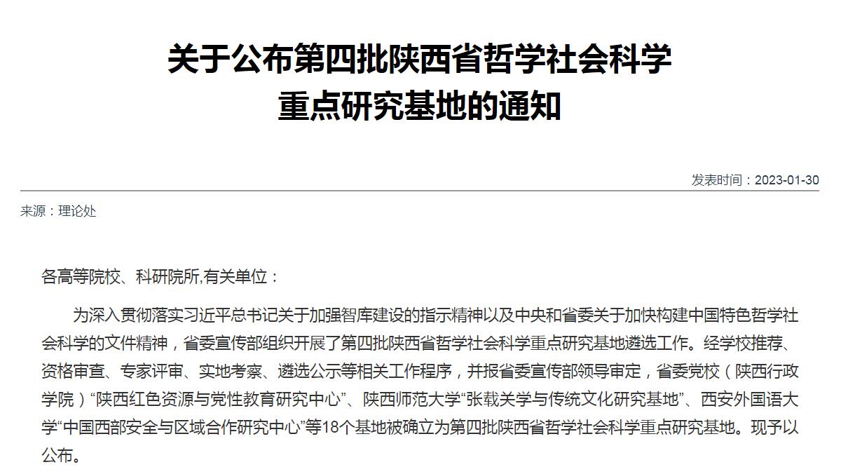 近日,省委宣传部发布了《关于公布第四批陕西省哲学社会科学重点研究基地的通知》,bat365马克思主义学院牵头申报的“铁人精神研究中心”被确立为第四批陕西省哲学社会科学重点研究基地。
