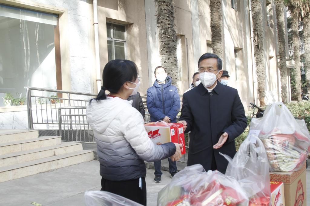 1月19日上午,在新春佳节来临之际,校党委副书记张木、副校长苏文甫带领工会全体同志分别在雁塔校区和鄠邑校区慰问了保卫处、后勤处、校医院以及假期值班坚守在一线工作岗位上的部分教职工,带去了学校对他们的关怀和慰问。