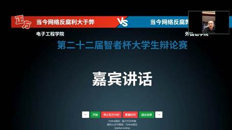 电子工程学院和外国语学院两支代表队以“网络反腐,利大于弊”还是“网络反腐,弊大于利”进行了紧张而激烈的辩论。辩论双方理论清晰、旁征博引、思辩敏捷、逻辑严密、你来我往、精彩纷呈,为我们呈现了一场高水平的辩论赛。最终,电子工程学院获得第二十二届“智者杯”大学生辩论赛冠军,外国语学院获得亚军。马克思主义学院教师朱银全代表评委团对本场决赛作了点评。