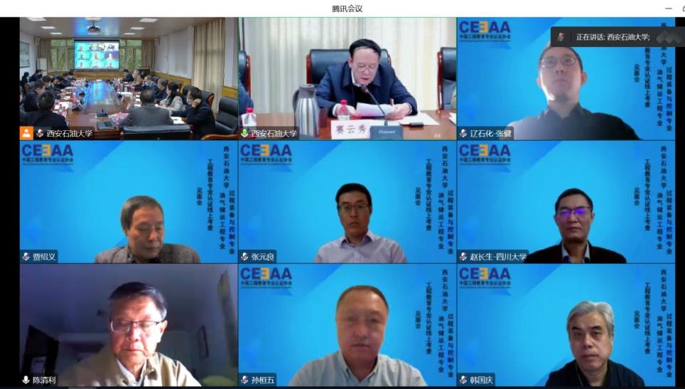 26日上午,考查专家组在线见面会在雁塔校区行政楼五楼会议室举行。校党委书记赛云秀、副校长陈军斌出席会议,相关职能部门和教辅单位负责人,石油工程学院、机械工程学院相关负责人,油气储运工程和过程装备与控制工程专业负责人以及专业教师代表参加了见面会。