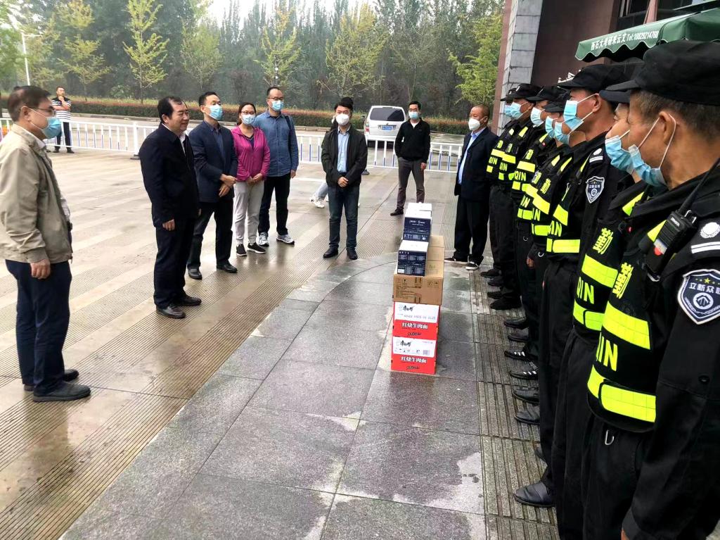 慰问过程中,李天太、雷西合、机关党委和工会负责人为各院(系)、机关、后勤、保卫、物业等单位的值班人员发放了牛奶、方便面、饼干等慰问物资。