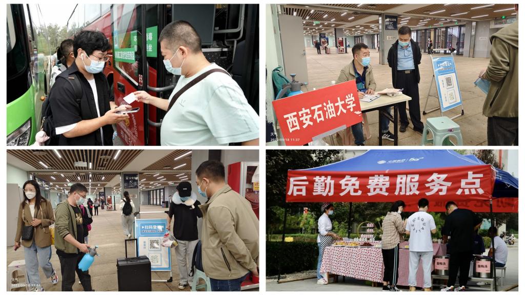 学校对新生入学和疫情防控工作高度重视,召开专题会议安排部署相关工作,校党委书记赛云秀、校长李天太等党政领导多次亲临现场看望2022级新生并慰问迎新工作人员。迎新期间,学校专门设立绿色通道服务站,确保2022级家庭经济存在困难的学生全部顺利入学。同时在雁塔、明德校区设立目的地付费处,为符合报销条件的新生报销打车费。机关党委慰问鄠邑校区174位一线工作人员,共发放180箱牛奶、850个面包、70箱方便面和70箱火腿肠。后勤处坚守在交通场站、被褥发放点和免费服务点,严格按照疫情防控要求开展工作。保卫处负责扫码测温、查验“两码”和入校审批手续、行李消杀、交通秩序维护等工作,全力为新生入校“第一关”保驾护航。财务处负责新生学费收缴、政策咨询、校园一卡通预充值等工作,通过微信公众号和“校园安心付”APP等方式开展缴费,简便快捷。校医院有序开展核酸检测和新生体检工作,确保师生健康安全。