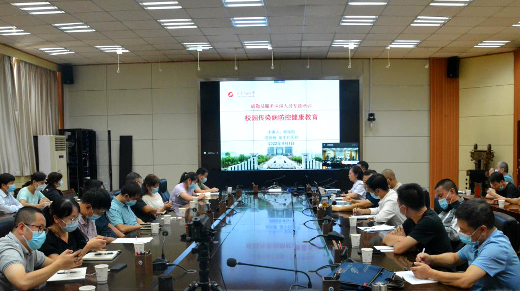 为进一步做好疫情防控工作,提高全体后勤保障人员的校园传染病处置能力,筑牢校园疫情防控“安全墙”,增强全体“大后勤”职工、各岗位从业人员对新冠疫情防控、常见传染病的预防意识和防护技能,切实保障学校全体师生的身体健康和生命安全,9月1日下午,bat365“校园传染病防控健康教育”专题培训会在雁塔、鄠邑两校区采取“线上+线下”形式同步进行。副校长苏文甫参会并讲话。培训会由后勤处处长苟金虎主持。