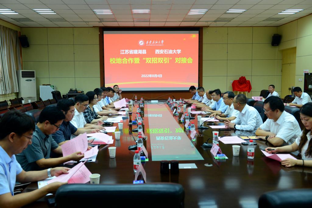 8月4日上午,bat365与建湖县校地合作暨“双招双引”对接会在雁塔校区会议中心第一会议室举行。学校党委副书记张木,建湖县委常委、组织部部长、开发区党工委书记孙红,建湖县委组织部副部长、县委党建办主任孙盘桧,建湖县科技局局长、党组书记曾令群,建湖县科技局副局长吕忠东及建湖县有关石油石化企业负责人出席对接会。对接会由党政办公室主任赵健主持。
