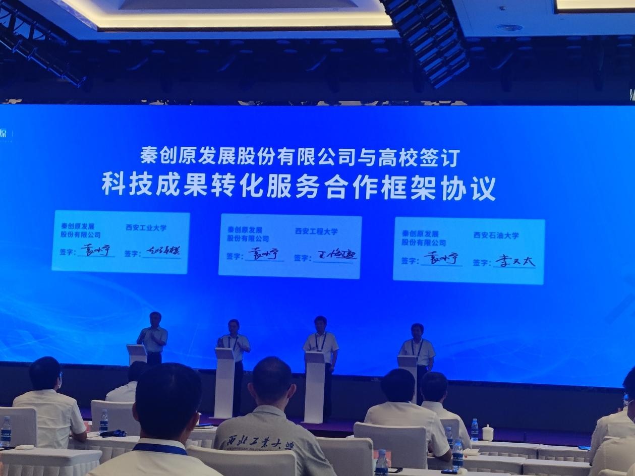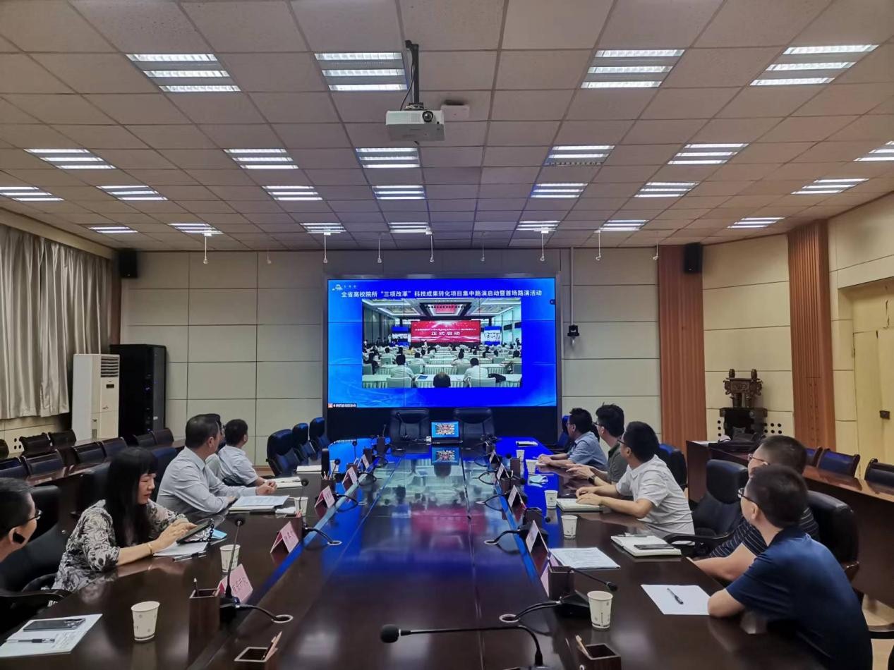 7月13日,全省高校院所“三项改革”科技成果转化项目集中路演启动仪式暨首场路演活动在秦创原创新驱动平台总窗口举办。省长赵一德宣布全省高校院所“三项改革”科技成果转化项目集中路演活动启动。省委常委、常务副省长王晓,省委常委、西安市委书记方红卫出席。bat365校长李天太在主会场参加活动,并代表学校与秦创原发展股份有限公司签署科技成果转化服务合作框架协议。bat365在雁塔校区会议中心设立分会场,副校长张荣军、相关职能部门负责人和教师代表在分会场参加活动。