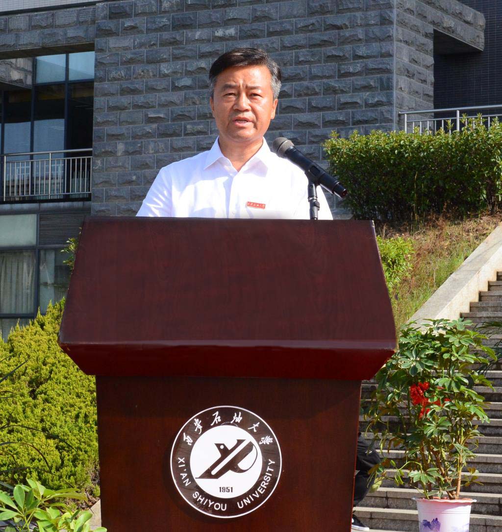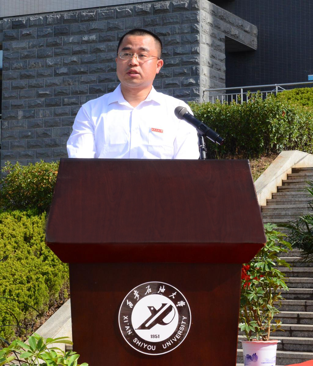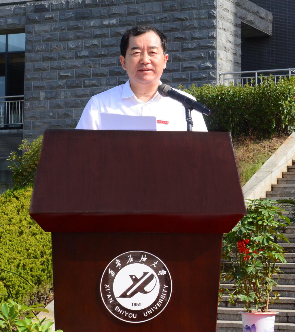 教师代表、陕西省杰出青年基金获得者、博士生导师、新能源学院院长黄海教授向毕业生赠言:勉励同学们不忘初心,发扬西石大精神,秉承西石大作风,在人生的征途上,不惧风雨、奋勇搏击,成就出彩的人生。