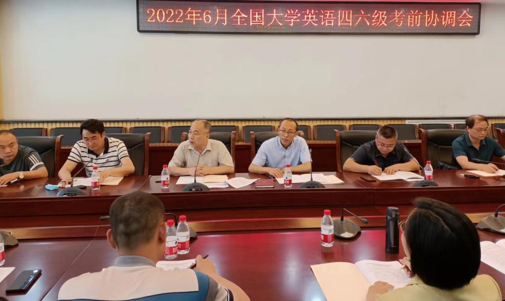 为确保本次考试工作的顺利进行,6月6日上午在鄠邑校区,学校专门召开了2022年上半年全国大学英语四六级考试工作协调会。陈军斌在会上强调,四六级考试是国家级考试,各部门要高度重视,认真履行工作职责,强化责任意识,保证考试顺利进行。他对本次四六级组考工作提出具体要求,一是要认真做好考前准备工作,严格监考教师资格审查及请假制度,杜绝临时代监考行为,做好监考教师的培训和考务工作安排,确保工作人员熟悉规则;二是采取有效措施,确保安全保密工作万无一失,做好试卷保密和交接工作,加强监督;三是惩防并重,严肃考风考纪,杜绝舞弊事件的发生;四是加强考试环境综合治理,检查语音设备并排查信号盲区,确保听力考试顺利进行;五是要扎实落实疫情防控要求,做好应急预案,严格落实防疫工作职责。