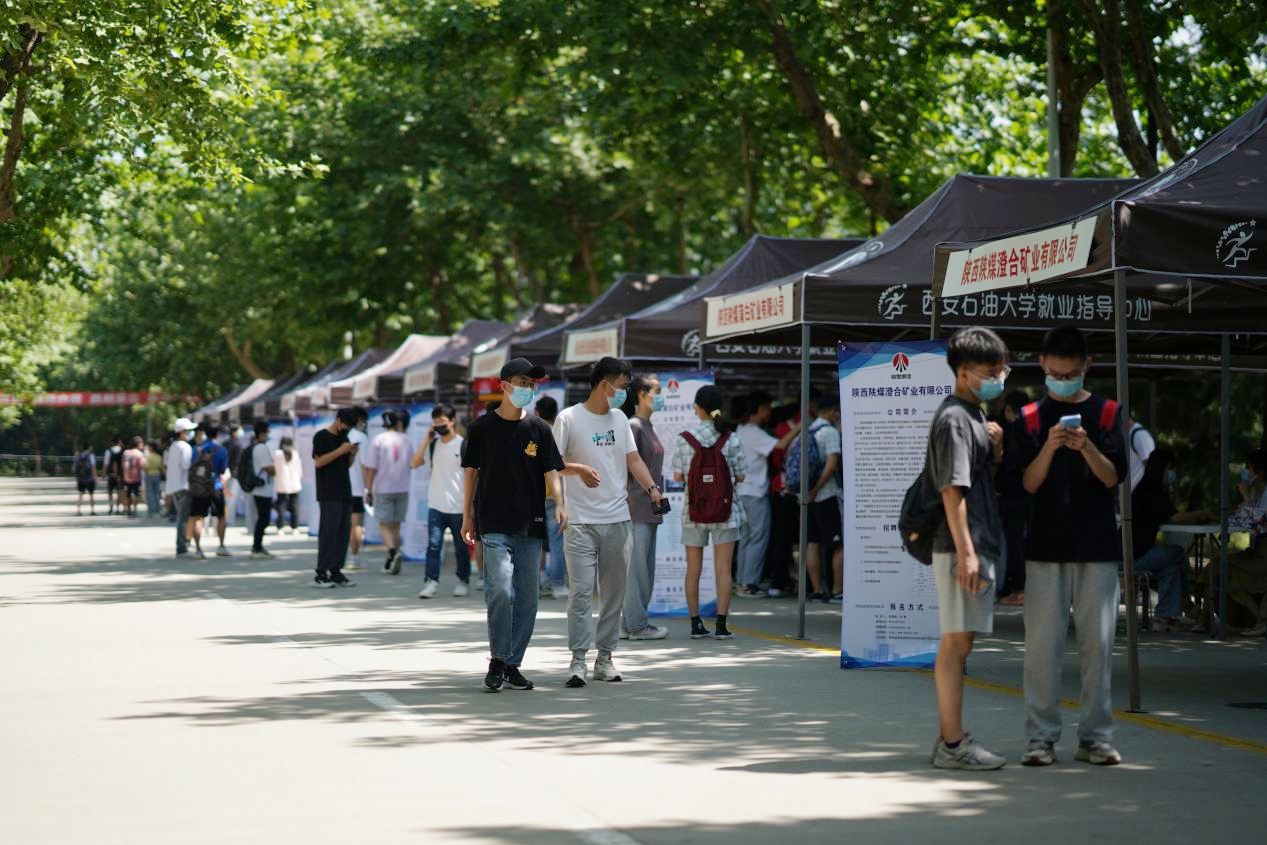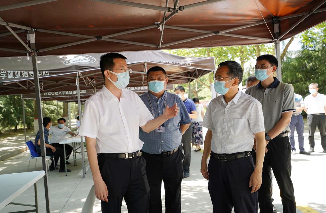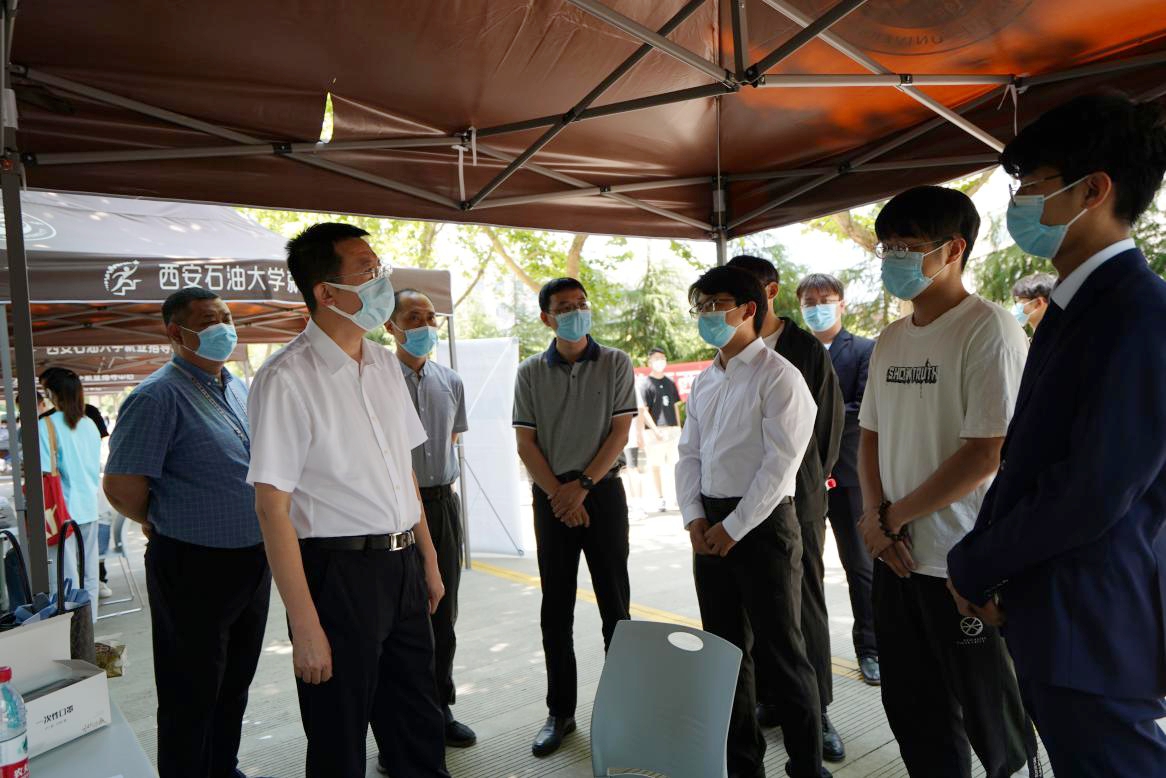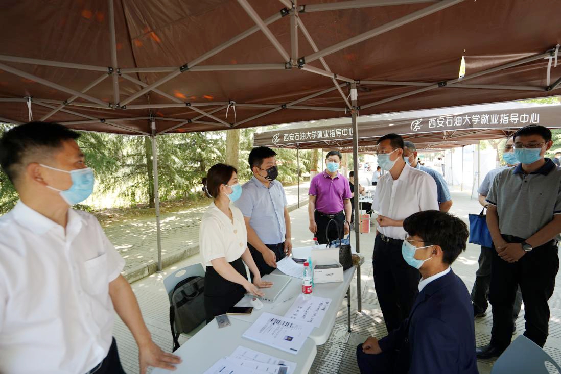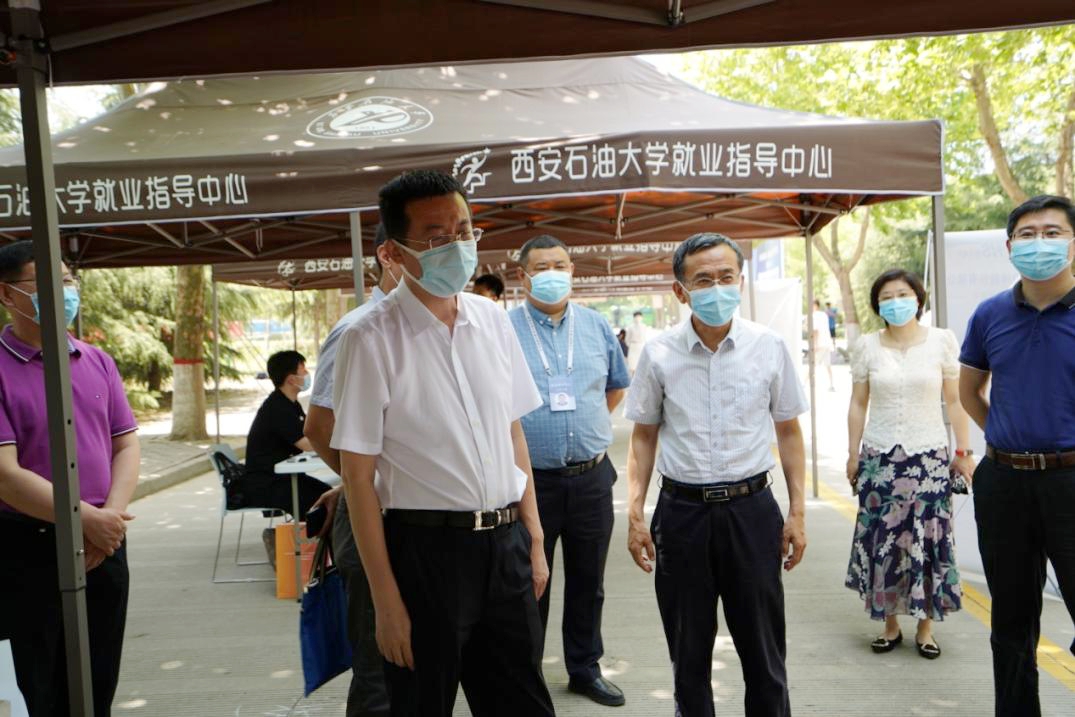 6月1日上午,由陕西省人力资源和社会保障厅、陕西省国有资产监督管理委员会、陕西广电融媒体集团主办,陕西省人才交流服务中心、bat365中文官方网站承办的“公共就业服务进校园——省属国企稳就业高校毕业生专项招聘会”在bat365鄠邑校区举行,陕西延长石油集团、陕煤彬长煤矿、西北有色集团713总队有限公司等18家省内重点企业参会。陕西省人力资源和社会保障厅副厅长井海滨、就业促进处处长王晓龙、陕西省人才交流服务中心毕业生部部长李阳莅临现场视察指导工作。校党委副书记张木、相关职能部门负责同志现场陪同。