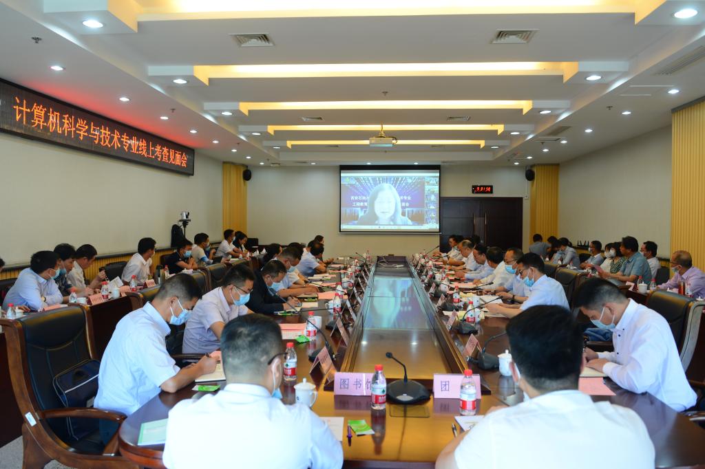 23日上午,现场考查专家组在线见面会在鄠邑校区图书馆第二会议室举行。校党政领导赛云秀、张木、陈军斌出席。相关职能部门和教辅单位负责人、计算机学院相关负责人、计算机科学与技术专业教师参加了见面会。