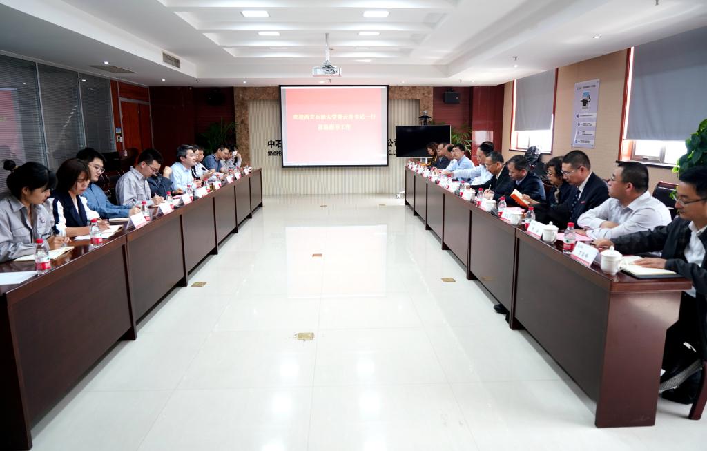 赛云秀代表学校向绿源公司一直以来给予学校的大力支持和帮助表示感谢,并简要介绍了bat365近年来建设发展取得的成绩。他指出,绿源公司是中石化旗下致力于绿色能源开发的示范性企业,在地热资源开发与利用、节能技术服务、地热资源产业化开发与研究方面走在行业前列。学校与绿源公司的合作由来已久,已签署战略合作协议,共建了科研与实践教学联合示范基地。特别是,bat365与绿源公司联建的地热能校企联合研究中心是陕西省首个地热领域“四主体一联合”研发平台,该中心的成立将进一步提升bat365在新能源领域的科技成果转化能力,推动产学研用深度融合,实现企业与高校优势互补,为实现国家双碳目标做出积极贡献。他强调,开展此次走访调研,既是贯彻落实党中央、国务院关于高校毕业生就业工作的决策部署,也是深化产教融合、校企合作的具体行动。他希望,校企双方以此次活动为契机,充分发挥各自优势,在学生实习就业、人才培养、科技创新、平台建设、产学研合作等方面进一步拓宽合作领域,为学生提供更多实习实训和就业机会,深入推进科教融合、产教融合,建立长期共赢的伙伴关系,推动校企双方共同发展。