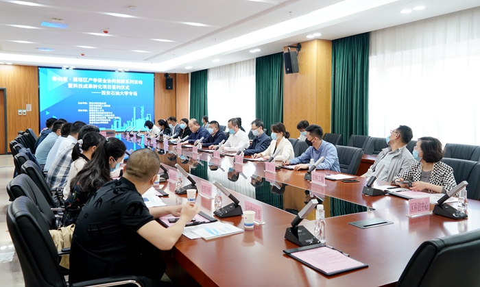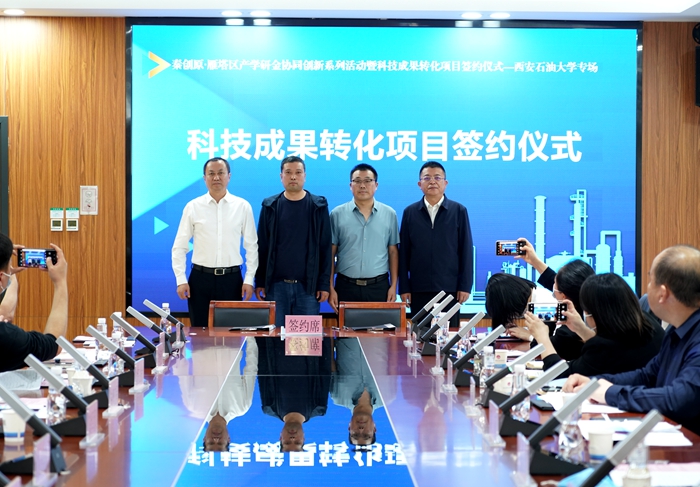 会上,科技处(科技成果转移转化中心)刘顺介绍了科技成果转化工作基本情况,张云燕推介了科技成果,科研教师代表到会并与企业签订了2项合作项目。陕西石电能源工程有限责任公司、西安鸿程石油技术有限公司、西安石油勘探仪器有限公司、西安海联石化科技有限公司、西安三才石油工程服务有限公司、中国石油集团工程材料研究院有限公司、卡孚龙(陕西)石油化工有限公司等10余家雁塔区石油石化科技企业代表参会,并围绕产学研成果创新和技术转移,分别就单位目前的校企合作现状及实践中遇到的问题与bat365科技成果转移转化中心工作人员进行了深入探讨和交流。