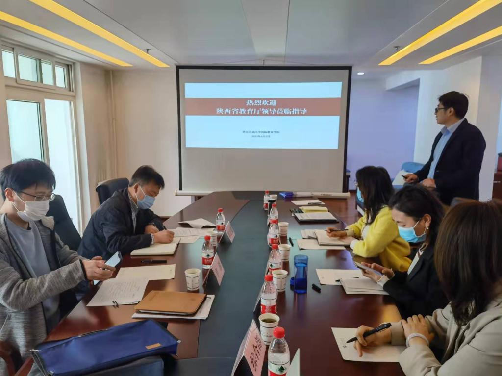 4月7日上午,省教育厅外事处一级调研员郭宏毅带队来bat365就近期国际学生管理服务和疫情防控工作进行专项督导检查,bat365国际教育学院在明德校区6号楼会议室进行了专题汇报,省教育厅外事处辛旗陪同督导。