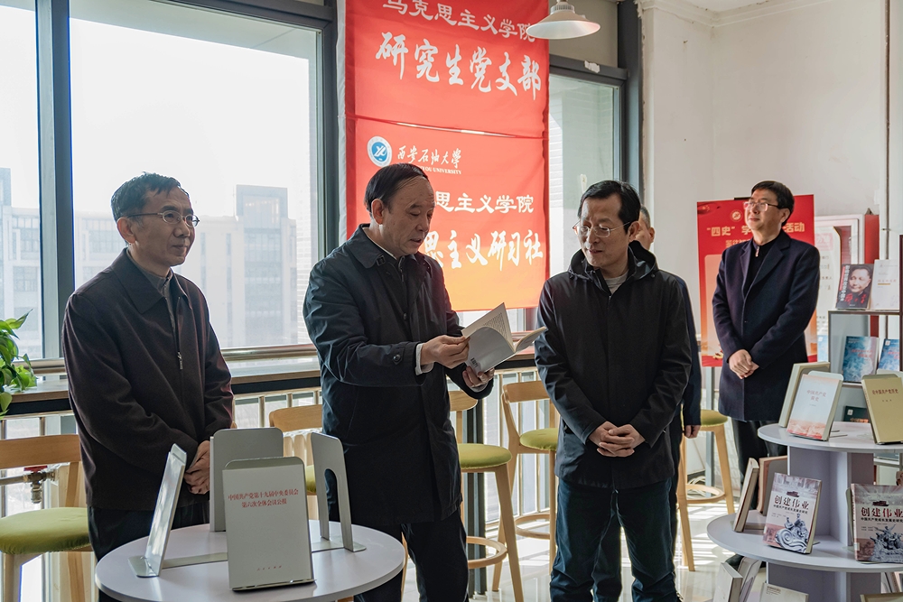 检查期间,张倩黎代表省委第十二巡回指导组进行了现场指导,并对bat365党史学习教育开展情况给予了充分肯定。他指出,党史学习教育开展以来,bat365中文官方网站党委高度重视、统筹谋划、分工明确、亮点突出、成效显著、宣传氛围浓厚,能够多途径、多角度、全方位推进党史学习教育走深走实,希望今后学校能把党史学习教育作为必修课、终身课融入日常、抓在经常,把学习贯彻党的十九届六中全会精神不断引向深入,为奋力谱写陕西高质量发展新篇章贡献西石大力量。