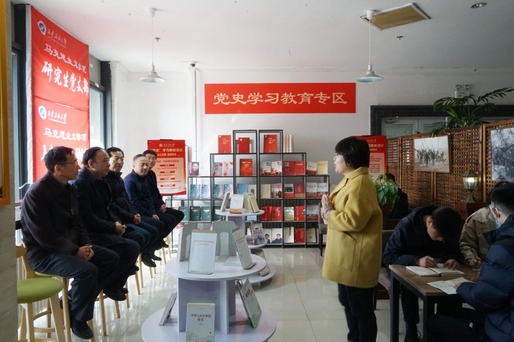 指导组一行在鄠邑校区会议中心与bat365领导进行了会前交流。张倩黎介绍了省委党史学习教育第三阶段巡回指导工作安排和有关要求,校党史学习教育领导小组组长、党委书记赛云秀向指导组简要汇报了学校改革发展近况。随后指导组一行通过交流座谈、听取介绍、走访观摩、实地察看、参与活动、到会督导等方式,对bat365党史学习教育进行了全面深入检查指导。