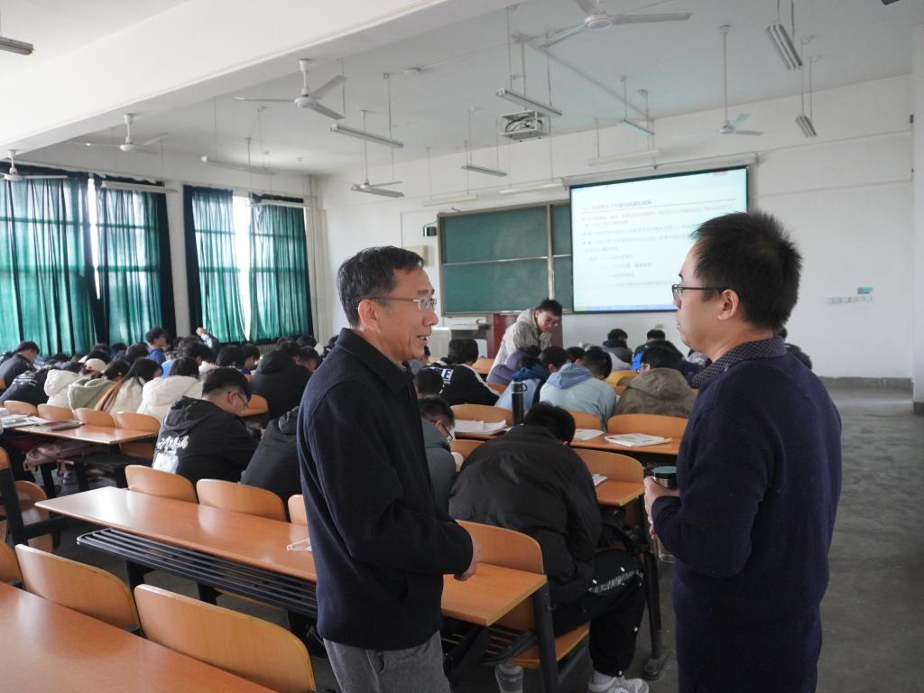 校领导走进教室,通过听课看课和实地巡查,对教师授课、学生听课、课堂教学秩序、教学设施设备运行等情况进行了全面细致的检查。课间,校领导分别与任课教师就教学方式与方法、课堂组织与管理进行了亲切交流,对老师们精神饱满、干劲十足的教学状态给予充分肯定,对同学们良好的学习状态倍感欣慰;同时对课堂互动、思政元素融入等问题提出了建议和意见,对改进课堂教学方法、提高教学质量提出了希望和要求。从检查情况来看,新学期各院(系)和相关部门教学工作准备充分,广大师生精神状态饱满,教学环境干净整洁,教学设备运行良好,教学防疫措施到位,教学运行井然有序,新学期呈现出新气象、新面貌。