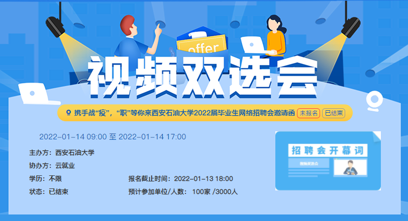 搭平台。一是大力举办线上招聘活动,积极搭建网络招聘平台,畅通就业信息线上发布渠道,持续发布招聘信息,密集开展网络招聘活动。疫情发生以来,已举办或承办全国能源动力行业专场空中双选会、“千岗万企业 百校联合”陕西抗疫助就业bat365中文官方网站专场网络招聘会、“同心战疫 助力就业”陕西地区重点高校2022届毕业生(公益)空中双选会、陕西省2022届毕业生综合类网络双选会、“携手战疫,职等你来”bat365中文官方网站2022届毕业生网络招聘会、陕西省部属及省属高水平大学“暖冬行动·研后有你”2022届毕业生冬季空中双选会等大型招聘会共计15场,累计参会单位达4000余家。二是开启重点企业重点行业专场空中宣讲平台。积极邀请用人单位参加空中宣讲、互动答疑和视频面试,全面加强与用人单位沟通交流与合作。截至目前,已开展空中宣讲会10场,其中包括海尔集团、浙江吉利控股、京东集团、牧原食品在内的优质用人单位。三是全面搜集挖掘各类招聘信息。疫情发生以来,充分利用就业指导中心官网、公众号、QQ/微信群等累计发布包括中铁一局集团公司、中泽油服、中国一汽、中国船舶重工、十堰市选调生等单位招聘公告70次,招聘岗位信息81条,总点击量达2万余次。