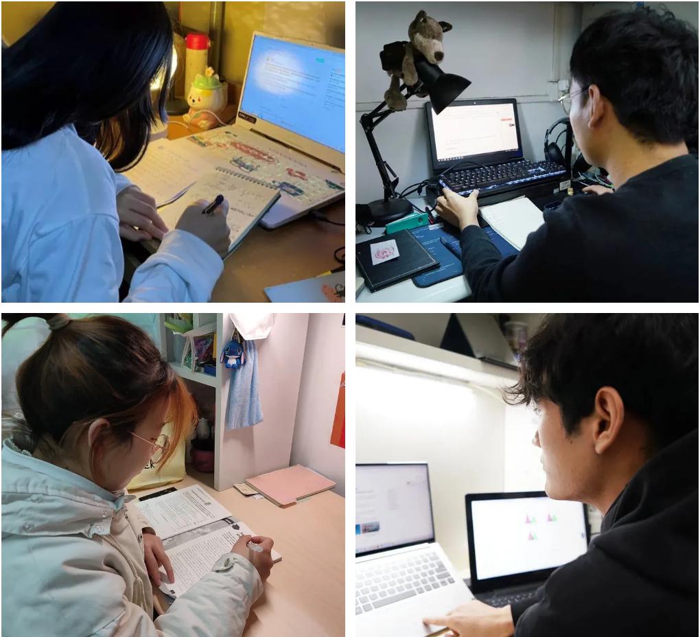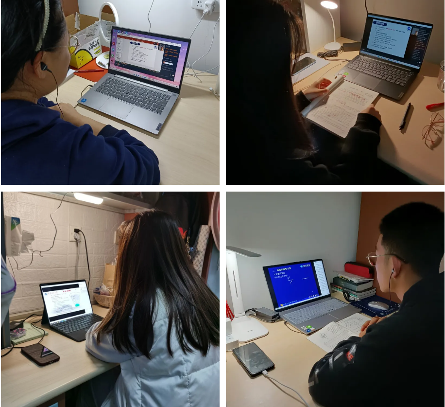 “停课不停学”,bat365学子通过电脑、平板、手机等设备进入直播课堂,在宿舍认真地上网课。 戴上耳机,聚精会神,思路紧跟老师的节奏。没有课程的时间也要自主学习,写作业、查论文、浏览信息。自我的时间,更要好好管理,用笔记录课堂知识要点。