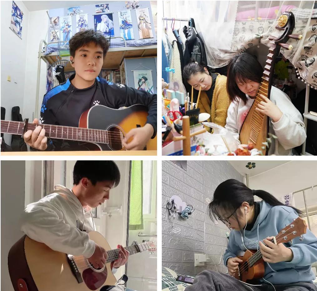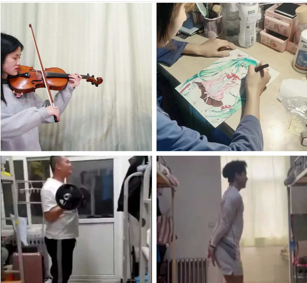 学子们的课余生活也丰富多彩。时而抚琴一首,愉悦身心,时而休闲锻炼,强身健体。凝聚抗疫力量,鼓舞抗疫斗志,学子们发挥特长创作文艺作品,凝聚起师生抗击疫情的信心和勇气。