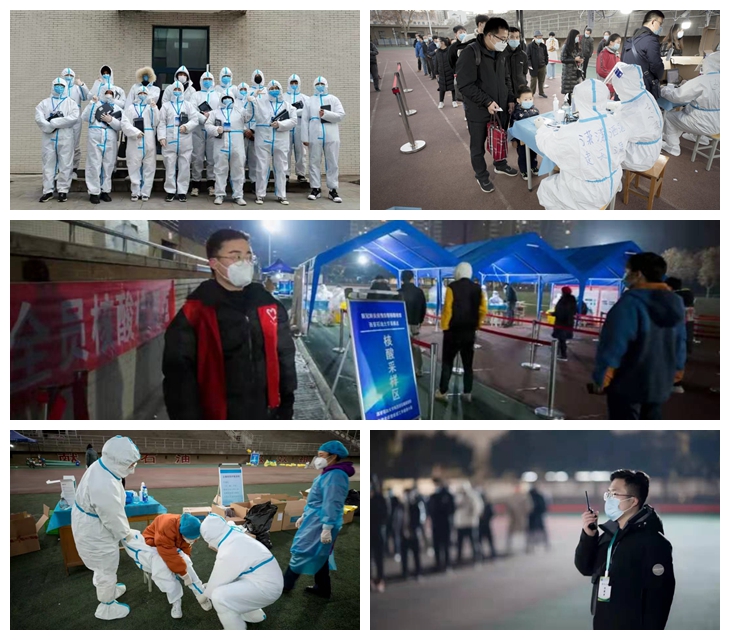 根据西安市疫情防控的核酸检测安排,12月以来,学校需要进行多次全员核酸检测,为了确保此项工作的顺利、有序开展,研究生工作部、研究生会号召在校同学积极参与志愿服务工作。在招募公告发布的很短时间内,就有数百名研究生同学主动请缨,用实际行动彰显西石大学子担当。研究生志愿者们反应迅速、到岗及时,活跃在核酸检测的验码环节和现场秩序维护中。“请大家保持间距,有序进行核酸检测” “同学们请自觉戴好口罩” “保持间距,提前打开一码通”,每一句话都是认真负责,每一个动作都很细致入微,齐心协力为全校师生的健康保驾护航。身着防护服、戴口罩、护目镜和一次性手套,一个个可爱的人夜以继日,争分夺秒地奋战在没有硝烟的战场,“战袍”早已被汗水打湿,手脚早已在严寒中冻得冰冷,但他们依然坚守一线,主动担当、尽职尽责,共同守护全校师生的健康。截至目前,全校已有300余名,累计1000余人次研究生志愿者投入到核酸检测工作中,获得了全校师生的认可。