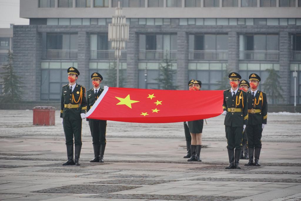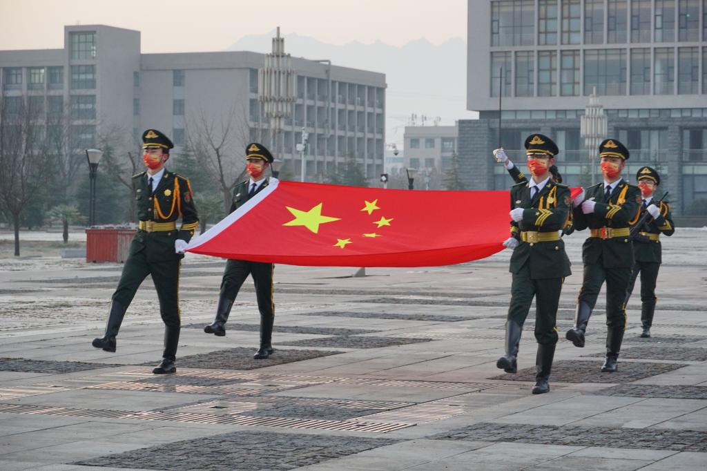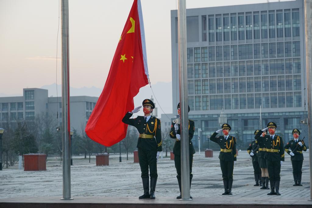 近日,西安疫情形势复杂严峻,正处于防控关键窗口期,为强化爱国主义教育,激发广大青年学生的爱党、爱国自觉,调动广大学生主动投身疫情防控的积极性,凝聚战胜疫情的信心,2022年1月1日上午8时,bat365在鄠邑校区图书馆北广场举行以“共同抗疫,爱国力行”为主题的升国旗仪式。全校师生通过网络平台直播观看升旗仪式。