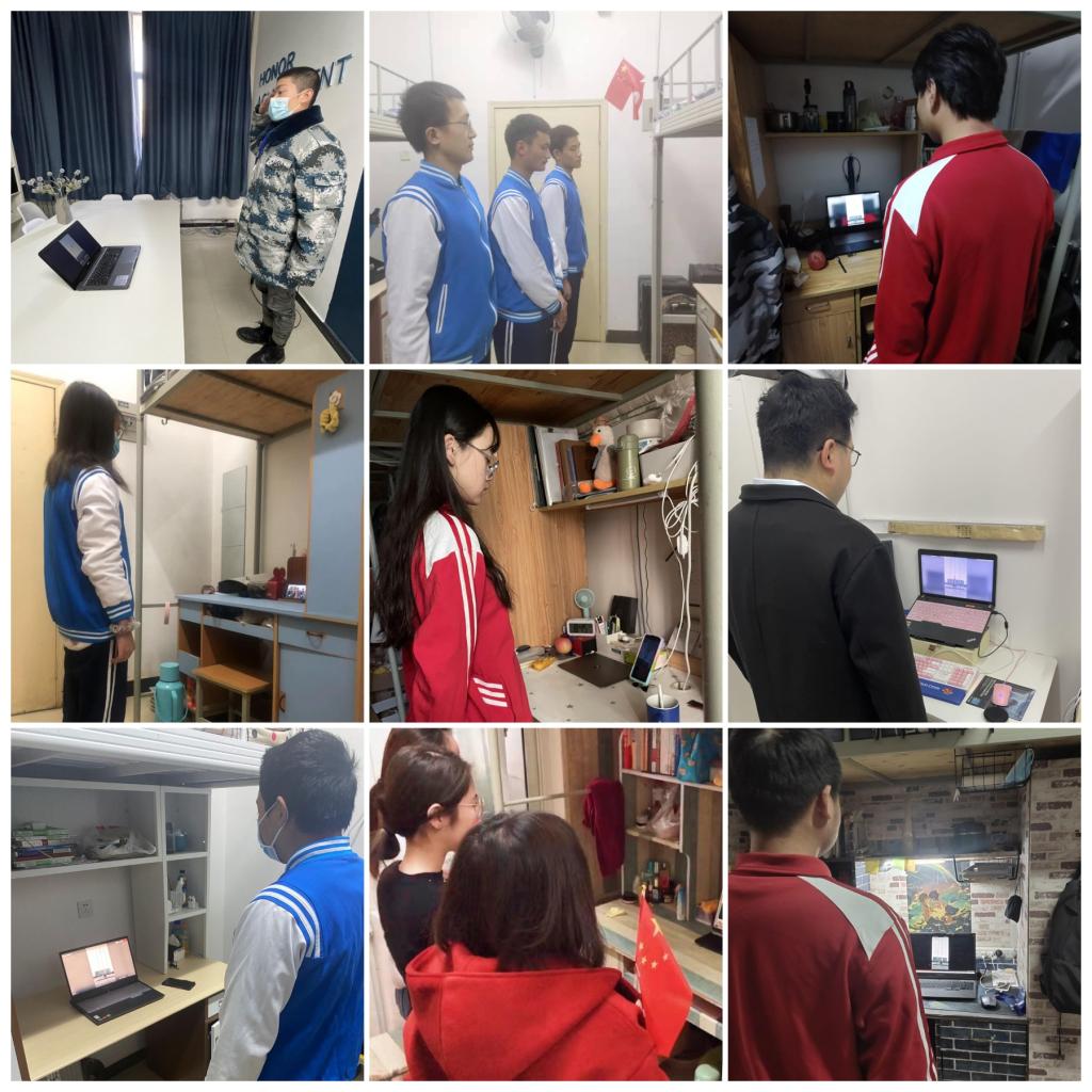 这是一场在特殊时期通过网络直播的升国旗仪式。伴随着激昂的《义勇军进行曲》,bat365师生们在宿舍通过观看屏幕中冉冉升起的五星红旗,高唱国歌,行注目礼,表达对祖国的无限热爱与战胜本次新冠疫情的坚定信心。