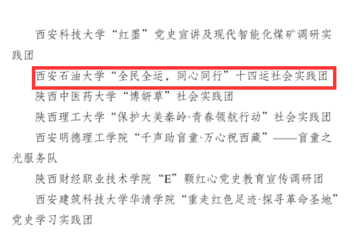 该实践团由13名2020级和2019级资源勘查工程、地质学和石油工程专业学生组成,先后深入西安市雁塔区、新城区、鄠邑区与奥林匹克体育中心进行暑期社会实践调研,通过志愿服务、实地考察、发放问卷、个人访谈、文献调研等方法完成了《大型赛事对城市的影响——以第十四届全国运动会为例》(15000余字)的调查报告,并在学术期刊发表论文2篇。团队事迹也受到社会各界广泛关注,包括“陕西日报-群众新闻网”“三秦都市报”“陕西工人报”“西安晚报-西安发布”“潇湘晨报”等10余家媒体对此次活动进行了报道。