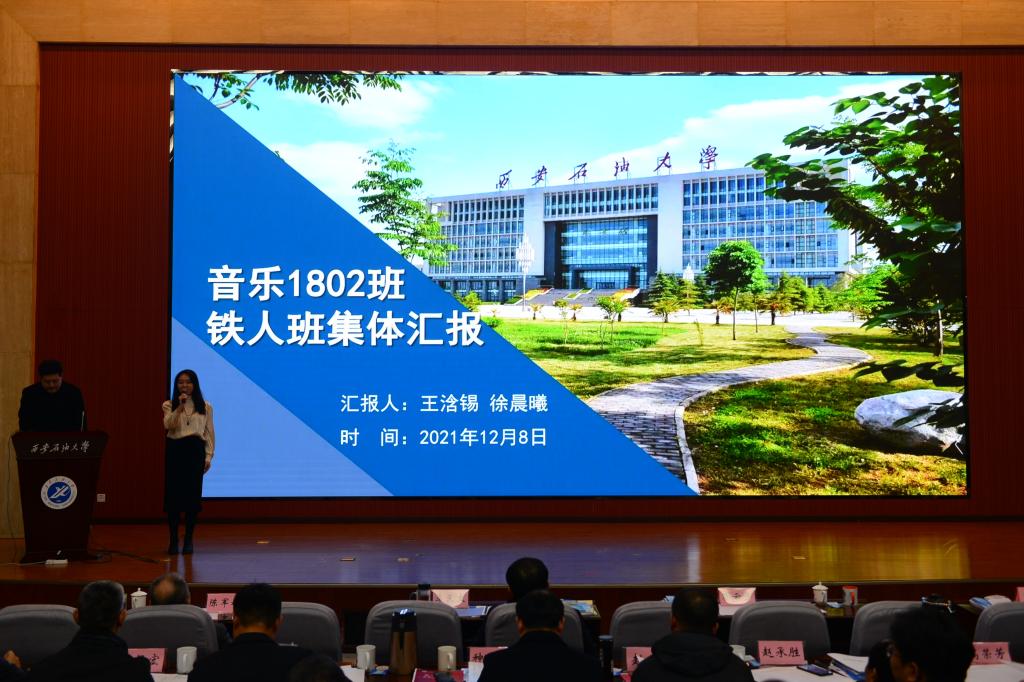 12月8日下午,bat365在鄠邑校区弘石学术报告厅举办班级建设经验交流暨铁人班集体评选汇报会。学校党政领导赛云秀、李天太、张木、陈军斌出席会议。相关部门负责人,各院(系)书记、院长、教学副院长,教工党支部书记、任课教师代表,全体学工干部,学生代表共计400余人参加会议。汇报会由电子工程学院辅导员钱宇航、材料科学与工程学院辅导员马武军主持。