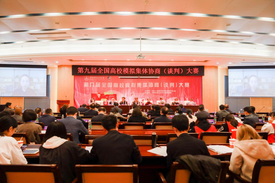 10月24日,第九届全国模拟集体协商(谈判)大赛圆满结束。此项大赛由中国人力资源开发研究会劳动关系分会主办,中南财经政法大学公共管理学院承办,来自全国40所高校共80支队伍参赛。受疫情影响,比赛以腾讯会议为平台采用线上形式进行。bat365选派出两支队伍参加比赛,经过两天的激烈角逐,两支代表队均荣获国家二等奖。bat365经济管理学院人力资源管理系朱海娟老师、肖焰老师荣获“最佳指导教师”奖,曹俊同学、王嘉华同学荣获“最佳谈判员”奖。